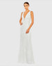 More than just bright sequins, the embellished lattice design adds eye-catching allure to this special gown. We love the understated silhouette and luminous sequins, but what else makes it a standout? The plunging neckline and two beaded straps that highlight your waist.